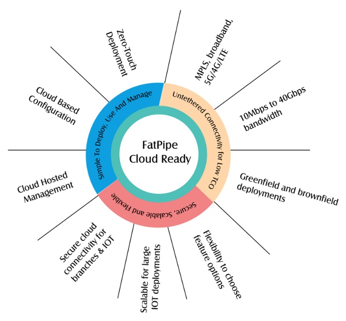 FatPipe's Software-Defined Wide Area Networking (SD-WAN) products provide solutions for an easy migration to Hybrid WAN. FatPipe delivers companies the ability to centrally manage their wide area network, manage branch office configurations, and deploy appliances with the zero-touch installation. A company can easily add cost-effective direct Internet access at a branch to increase available bandwidth. FatPipe's advanced policy management allows cloud destined applications to be routed directly out of the local Internet connection while maintaining corporate security policies. Applications that are hosted in the corporation's private cloud also benefit from a FatPipe managed hybrid network.